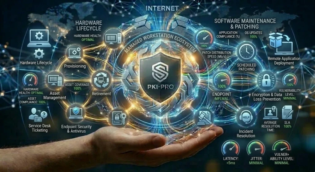 The scope of a managed workstation service is very broad and covers the entire lifecycle of the device. It can be structured into the following key areas: